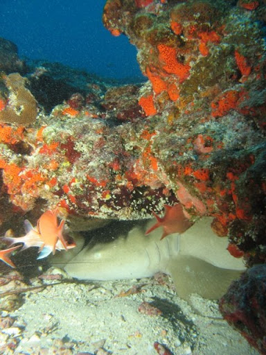 Depois, seguimos com destino ao Parque Marinho da Risca do Meio onde fizemos mais duas imersões de aproximadamente 25 minutos de fundo. O mar estava calmo como uma lagoa, a temperatura da água extremamente agradável e a visibilidade melhor ainda: 15 m!