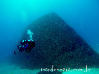 Aracati,CE. Navio cargueiro naufragado em 1961 é a atração aqui. Possui cerca de 100m de comprimento e atrai grande quantidade de tubarões-lixa, cardume diversos como paruns, galos e pirangicas, lagostas, tartarugas e muitas outras espécies. Sem dúvida um dos melhores mergulhos do Ceará. Profundidade 10m - 18m. Nível Básico.![]() |