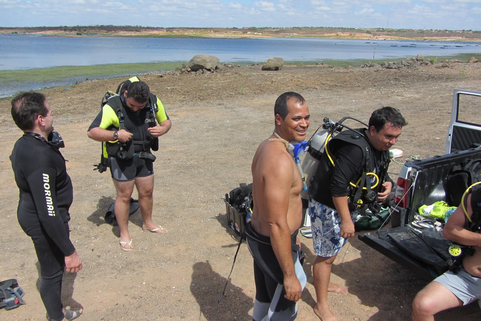 | Alunos-mergulhadores satisfeitos após conclusão do seu curso avançado no açude! |